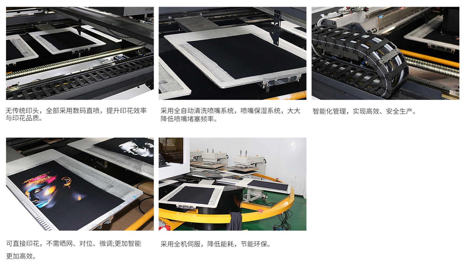 無傳統(tǒng)印頭,全部采用數(shù)碼直噴,提升印花效率與印花品質(zhì)